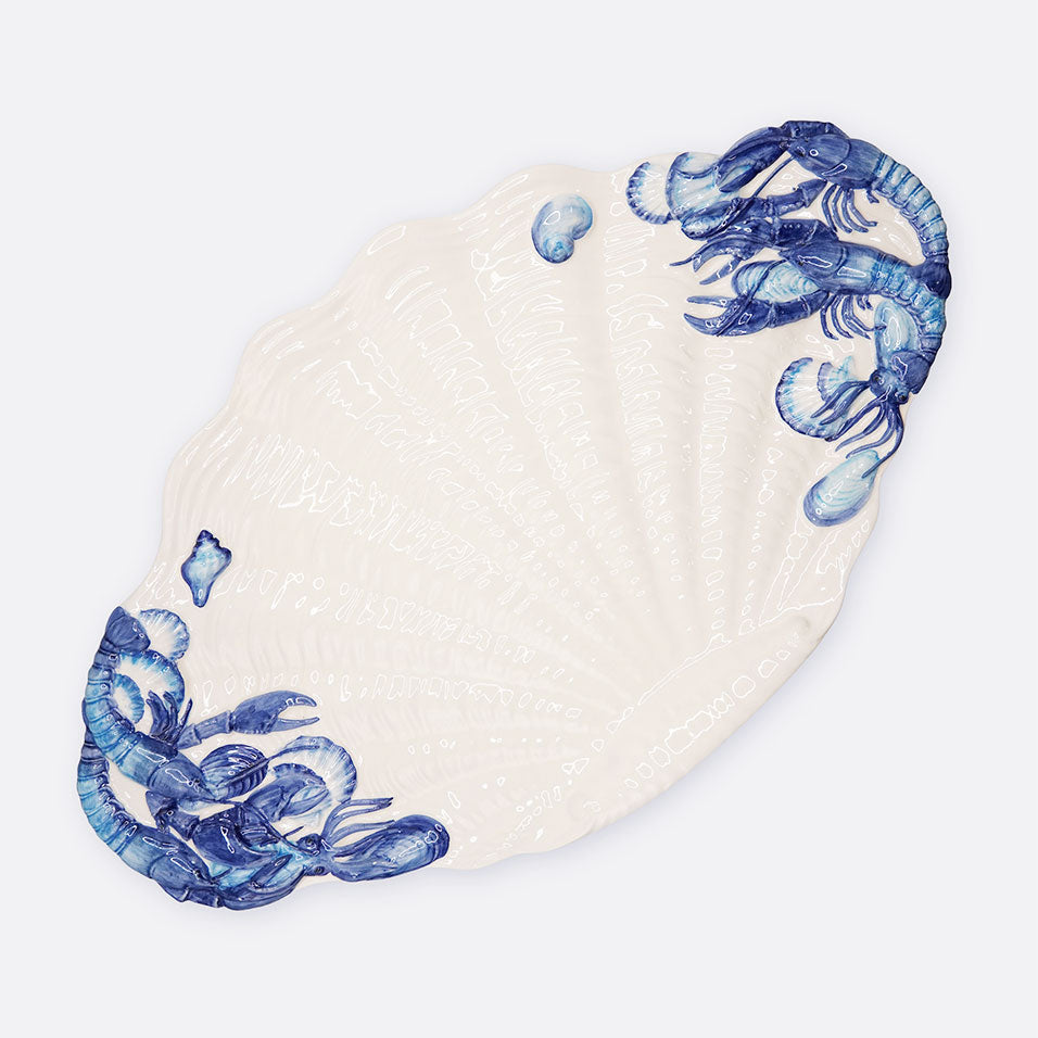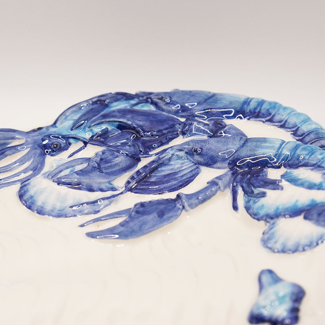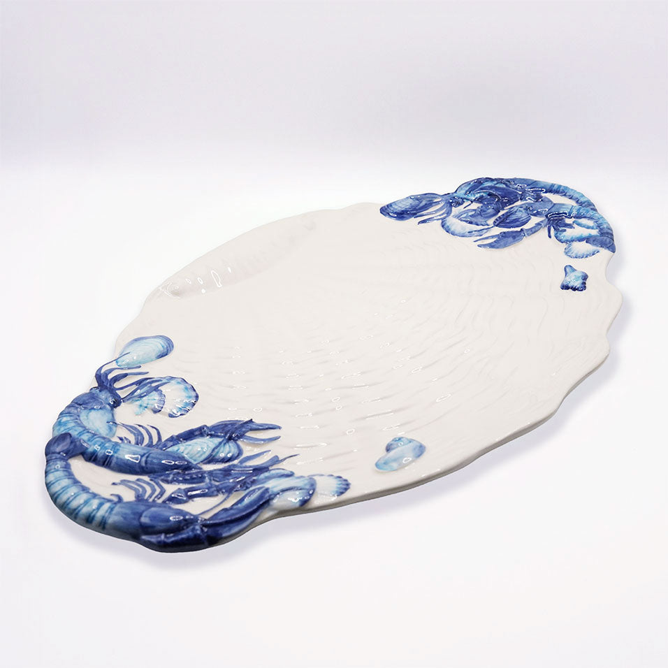 Scampi uppläggningsfat är ett vackert italienskt keramikhantverk som förenar funktion med design. De dekorativa kräftorna i vackra blå toner skapar en medelhavskänsla som lyfter vilken dukning som helst.
